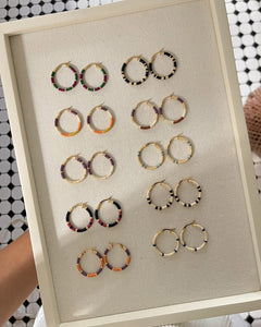 Estos Aretes Hoops Floral Pequeña  son una pieza atemporal, 100% hecha a mano por artesanas colombianas, utilizando técnicas tradicionales de bordado. Puedes combinarlos para todos tus outfits, tanto de día como de noche, logrando un look elegante y único.