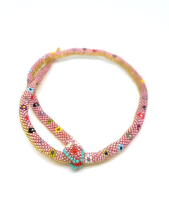 El Collar Culebra Pink es elaborado totalmente a mano. Su tiempo de producción es de 8 a 10 días hábiles. Si contamos con stock, será enviado al siguiente día hábil. El valor del envío se calculará al momento del pago.