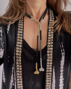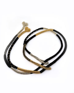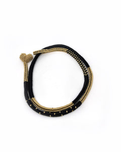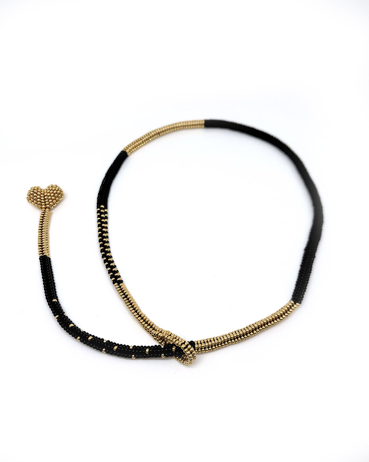 El Collar Lazos Nite es una joya versátil que combina romanticismo y diseño contemporáneo. Cada pieza está tejida 100 % a mano por artesanas urbanas, usando mostacillas checas y beads de Miyuki de la más alta calidad. Su diseño en lazo terminado en un corazón tridimensional representa unión, amor y energía positiva. Puede usarse de múltiples formas: doble, largo o como choker.